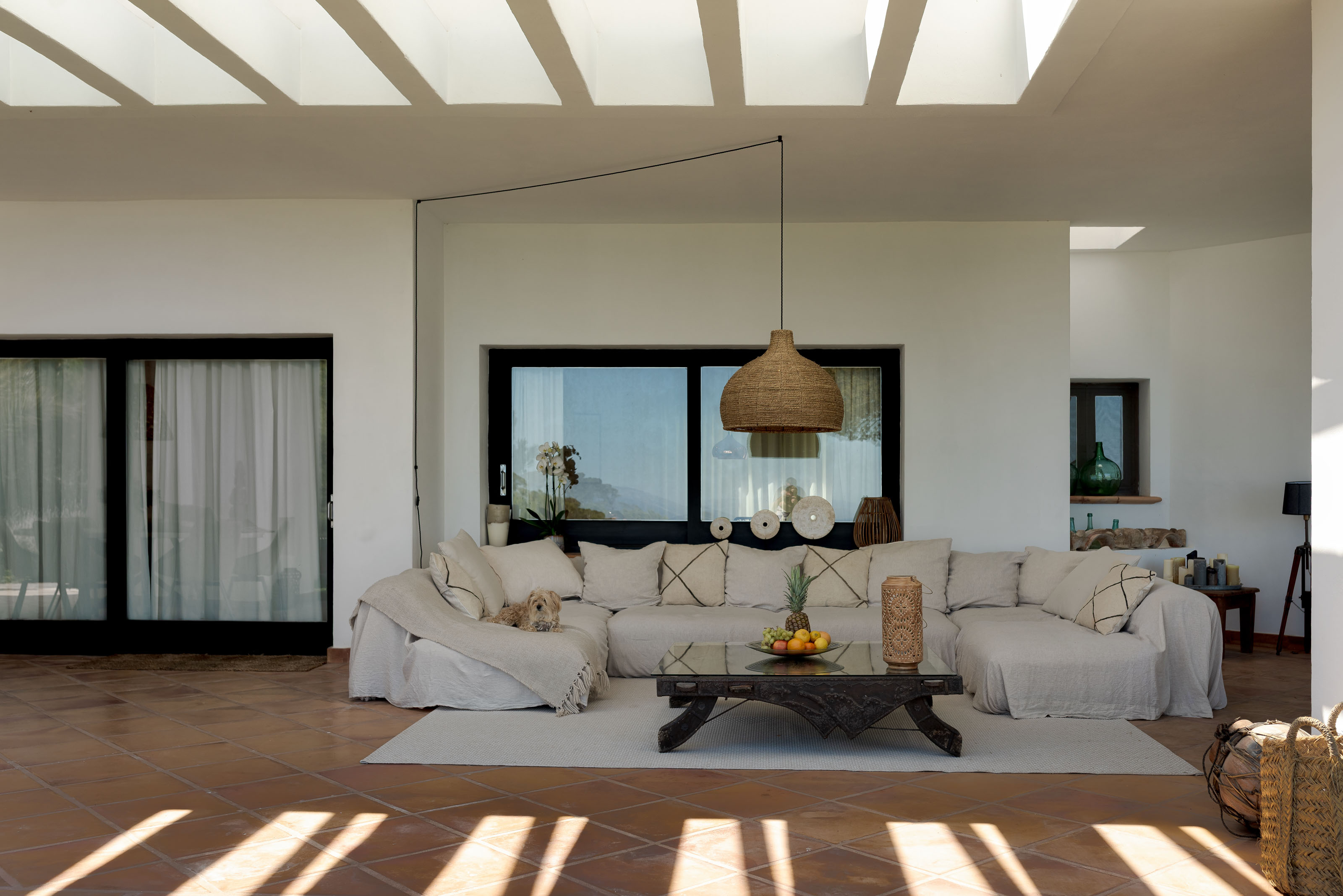Open plan living area that opens up onto a terrace with spectacular sea views
