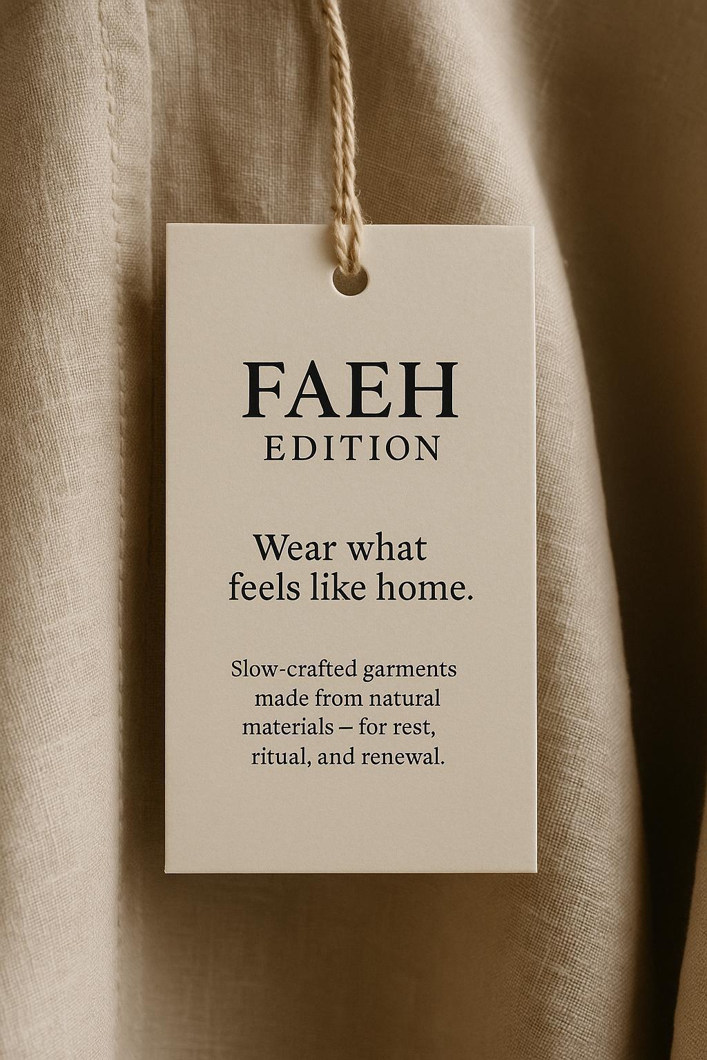 FAEH Edition will expand into limited capsule collections that explore wearable rituals — from linen loungewear to travel garments, artisan accessories, and lifestyle objects. The vision is to create clothing and essentials that feel like home: grounding, enduring, and alive with meaning.